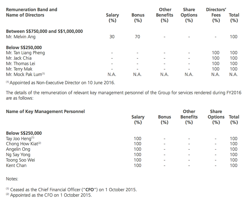 The Group does not have a formal dividend policy at present. The form, frequency and amount of dividends declared each year will take into consideration the Group’s earnings, general financial condition, results of operations, capital requirements, cash flow, general business conditions, the Group’s development plans and other factors as the Board may deem appropriate. As a growth company, the Group is preserving its funds for future expansions. Therefore, no dividends will be paid in respect of FY2016.