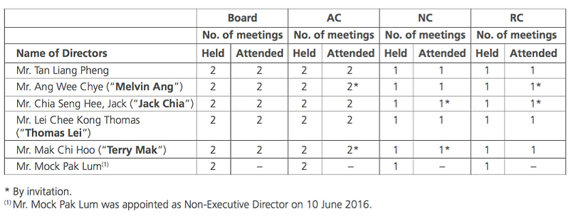 The results of the evaluation exercise will be collated by the Company Secretary for the NC’s review and consideration, which then makes recommendations to the Board on enhancements to improve the effectiveness of the Board as a whole. The NC, having reviewed the overall performance of the Board based on the evaluation criteria setting out in the formal evaluation form for the Board as a whole for FY2016, is of the view that the performance of the Board as a whole has been satisfactory. The NC is satisfied that sufficient time and attention has been given to the Group by the Directors. No external facilitator was used in the evaluation process.